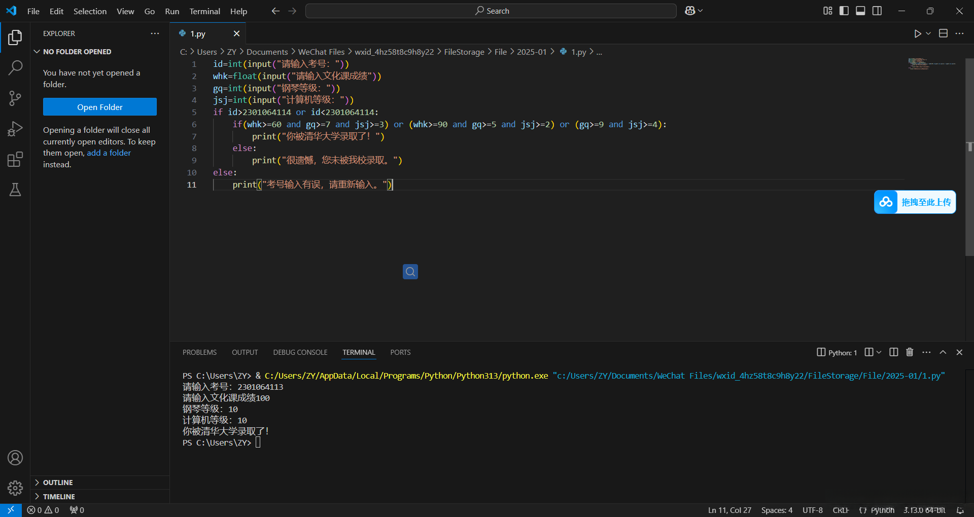 if(whk>=60 and gq>=7 and jsj>=3) or (whk>=90 and gq>=5 and jsj>=2) or (gq>=9 and jsj>=4):