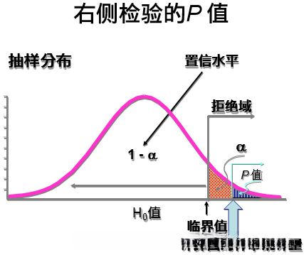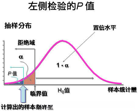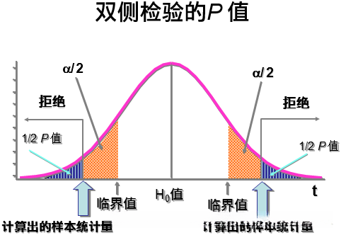 •是当原假设为真时得到比目前的样本更极端的样本的概率,所谓极端就是与原假设相背离;