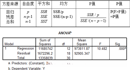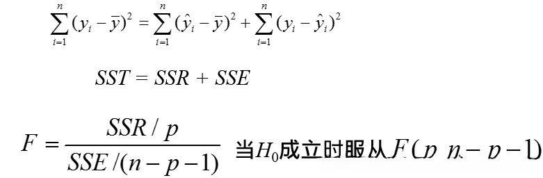 原假设的统计含义是:自变量全体对因变量y不产生线性影响。