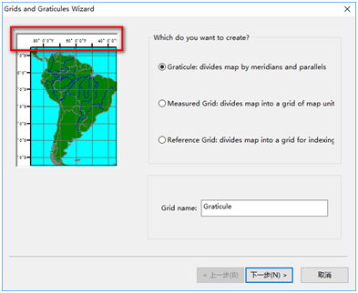 在图14中,Graticule:以经纬度形式显示网格;Measuered Grid:以公里网格形式来显示;Reference Grid:以ABCD\1234……显示网格,这个一般不常用;而后可以一直下一步,直到完成,然后点击确定就OK了;