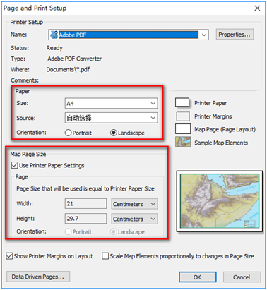 单击菜单“File——Page and Print Setup”,见图7,图7上面的红色框内是选择系统自带的纸张大小,下面的红色框内是自定义纸张大小,这些设置看个人制图需求;