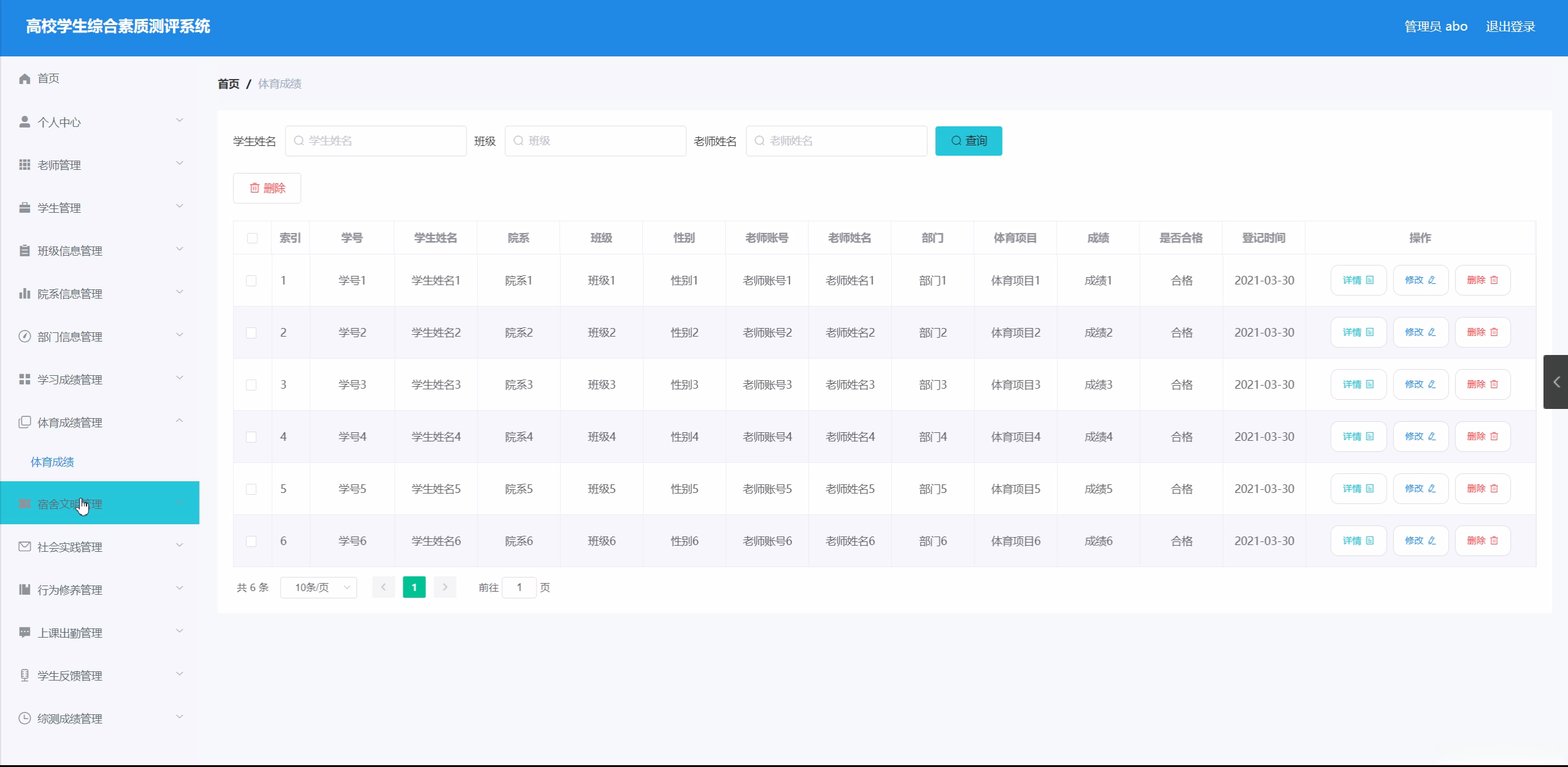 高校综合素质评价体系的建设和完善对促进学生的全面发展具有重要意义。它不仅能够激发学生在多方面的发展潜力,而不仅仅是追求分数上的提升。这一系统有助于教师和教育管理者更加全面地了解学生的学业表现和成长状况,并据此提供更加个性化的指导和支持。此外,在这一系统下产生的数据信息将为社会提供更多关于学生成长的数据资源,在人才选拔中起到更加精准的作用。综上所述,在这一系统的推动下,高校教育的整体质量将得到提升,并且能够更好地培养德智体美劳全面发展的高素质人才