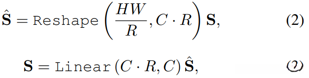 其中S表示需要缩减的操作序列(如Q、K、V向量),经过Reshape后被转换为reshaped形式,并通过Linear层处理得到最终输出张量)。该操作可使Q、K、V向量的尺寸调整为目标形状。