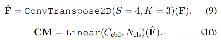 最后,在使用参数设置S=4、K=3的二维卷积后,其作用是对输入特征图F进行处理。接着利用融合特征图操作结合多层感知机(MLP)层生成一个形状为H×W×cls的预测结果。
