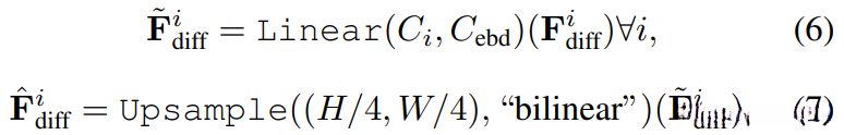 然后将前面四层的diff特征(H/4*W/4)拼接起来