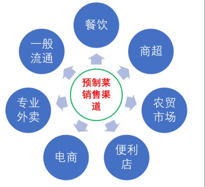 目前预制菜的销售渠道基本覆盖了所有的食品销售渠道,如餐饮、商超、农贸市场、便利店、电商、专业外卖市场、一般流通等。其中餐饮企业是预制菜的最主要销售渠道。