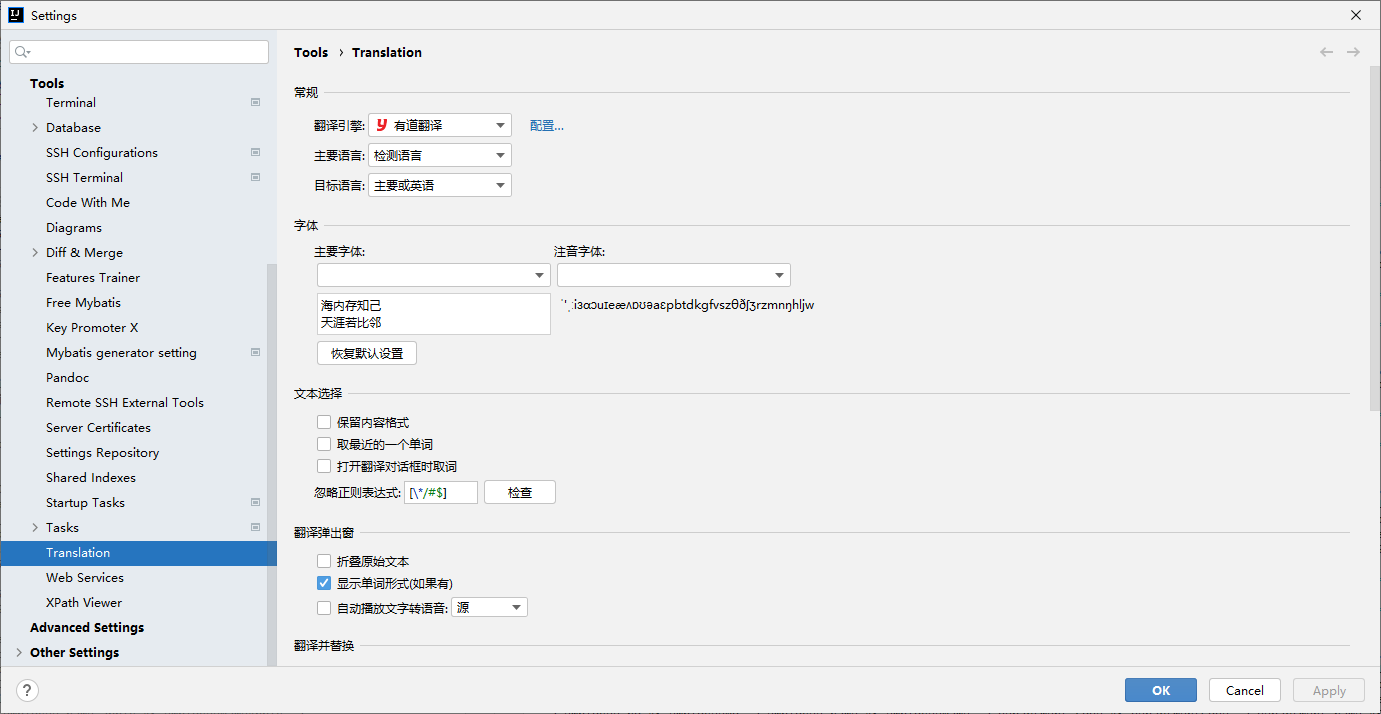 ,设置界面如下,翻译引擎需要申请id和秘钥。