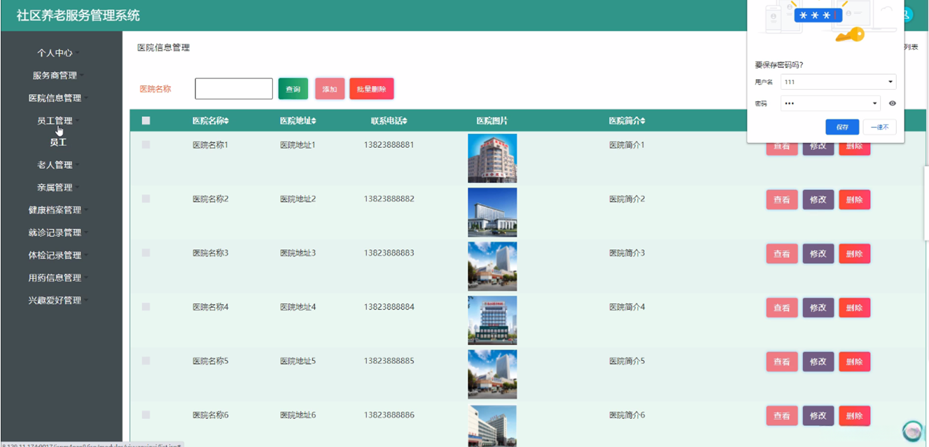 模块包含主界面管理系统以及多个功能管理系统如个人中心管理系统 包括但不限于个人信息中心 社区服务与治理 医务服务 供应商资源 系统安全等 以及各类专业人员的专属管理系统 包括医生 系统管理员 员工 家庭成员 病人及家属等 每个系统均提供相应的功能模块 以便您更好地维护健康 并提升生活质量 为您的健康保驾护航