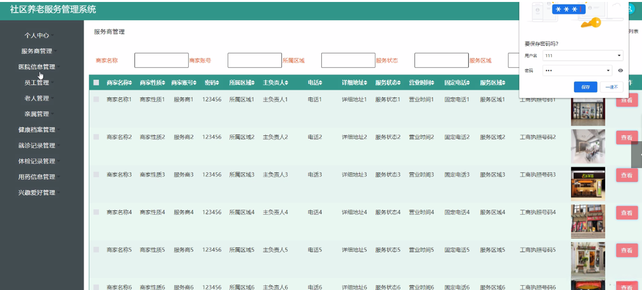 服务商管理:在列表中查看或显示包含商家名称的信息项及其属性数据,并完成修改操作(如更新密码或调整联系方式),如图5-1所示。
