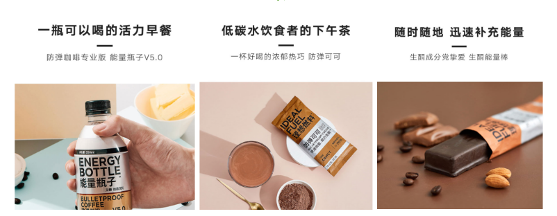 人群定位: (1)健身塑形,追求低低脂户外达人;(2)脑力工作者、忙碌上班族、紧急体力消耗,需要能量补充人群;(3)生酮减肥期,戒糖戒碳水化的爱美人群。