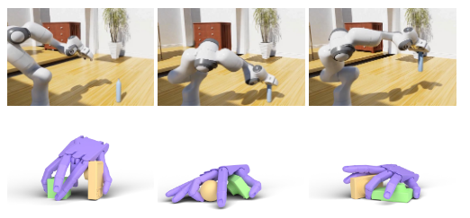 典型的直接抓取(sog)包含三个主要步骤:抓取检测、轨迹规划以及执行动作。在这个pipeline中,机器人系统首先通过外部摄像头捕获局部场景图像,并基于这些图像为目标对象生成一系列候选配置位置。其中一些方法采用开环策略,在确定最佳抓取位置后直接执行抓取动作;而另一种方法则可能结合闭环反馈机制以优化结果质量。值得注意的是,在开环策略中进行抓取检测至关重要;因为后续步骤依赖于这一阶段生成的坐标信息作为基础数据进行后续处理工作。为此;众多研究者致力于提高该环节的精度水平;从而进一步提升整体系统的可靠性和有效性。例如;Asif等人[175]提出了一种分层式联结森林模型;能够在识别目标类别的同时;估计物体定位区域及其姿态概率信息;这种设计有效提升了物体捕获的成功率;并且能在实时性要求较高的情况下维持较好的性能水平。近期研究中;Zhai等人[176]提出了 novel框架Fanet;该框架不仅能够精确识别关键点用于提升手眼协调精度;还能在保证实时性的同时保持较高的准确率水平;这种设计在实际应用中表现出良好的鲁棒性特征。此外;anygrasp[177]系统在物体质心定位方面进行了深入研究;并在此基础上采用了开放链路式策略以优化整个捕获过程中的动态调整能力