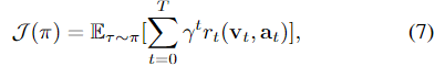 代表轨迹,在此处vt与at分别代表在时间步长T处的观测与动作;rt函数对应于在执行每个动作后从环境中获得的奖励;在此处提及的是一个折扣因子γ∈[0,1];它被用来权衡当前奖励与未来潜在收益的重要程度;由此可知,在强化学习中我们通常将目标定义为: