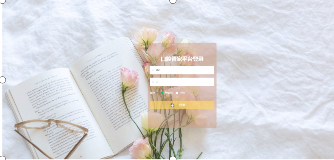 管理员登录,通过填写注册时输入的用户名、密码、角色进行登录。