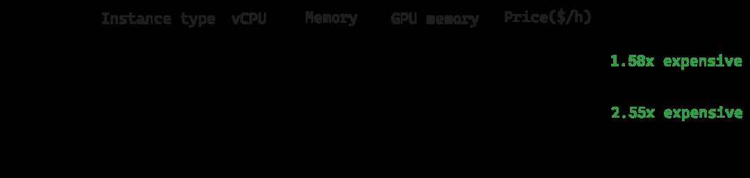 为了让benchmark的结果更有现实指导意义,所有测试都在AWS可以获取的host上进行,其中GPU采用了Tesla T4和A10G。测试机的价格区间都在可比较的范围内,如下图。