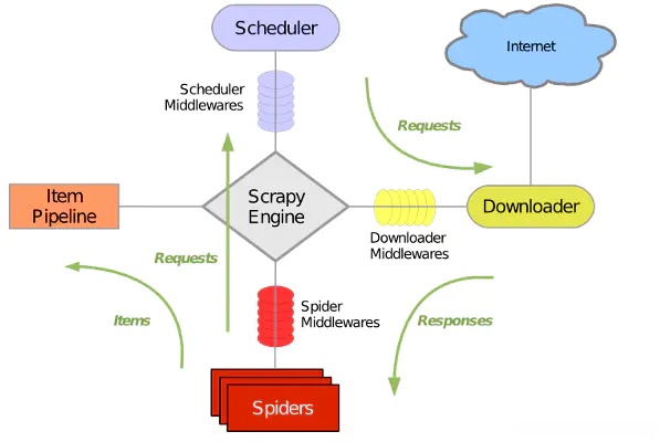 明确的模块化架构 :由 Spider、Item、Pipeline、Middleware 等组件构成,各模块间的逻辑划分特别突出。