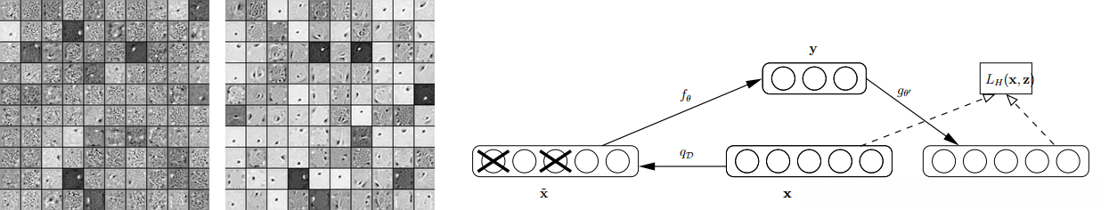 去燥 :具体来说, 去燥的方法是利用一种特定的概率模型(通常采用二项分布)来去除原始输入矩阵中的部分信息. 即每个位置上的数值都有可能被随机设为零, 在这种情况下看似部分数据的信息被删除了. 用这些被破坏的数据x'来推断变量y和z, 并通过比较推断结果与原始数据之间的差异来进行优化. 经过这一过程后, 网络就能够有效地学习并重建这些破坏性的数据模式.