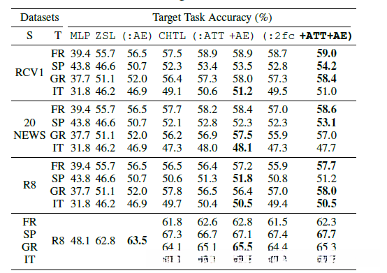 然后文章中还做了另一个实验就是不同语言不同类别间的文本迁移: