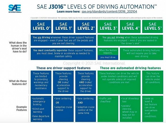自动驾驶分级 - 来自于美国汽车工程师学会(Society of Automotive Engineers)