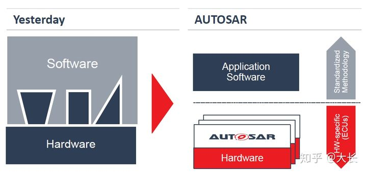 AUTOSAR提出了一个口号,叫做“Cooperate on standards, compete on implementation” 。意思就是汽车行业的整车厂和供应商共同合作开发一套汽车电子系统的软件开发标准,这样大家就可以专注于功能的开发,而无需顾虑目标硬件平台。