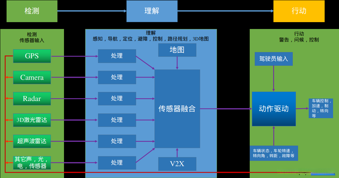 摄像头,超声波,声音,雷达和激光雷达传感器各有利弊,但是,如果将他们智能地组合在一起,则结果将是详细而可靠地360度试图。传感器融合.