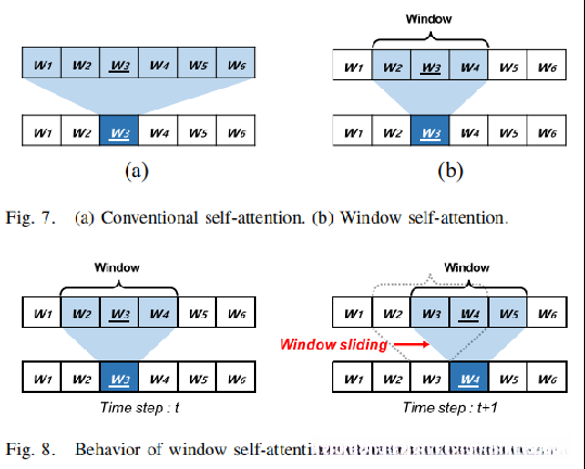 因为窗口自注意力将自注意力范围从 Nseq 减少到 2W + 2,其中 W 比 Nseq 小得多。