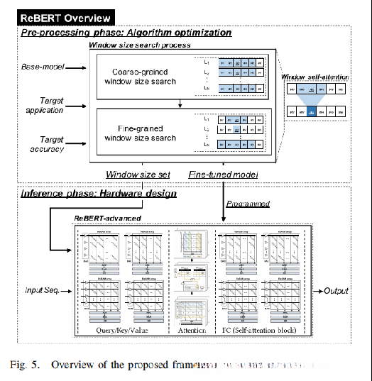 本文通过微调获得的新模型在预处理阶段被整合至RRAM架构中,并提出了一种支持自注意力机制的通用型RRAM架构硬件设计ReBERT。