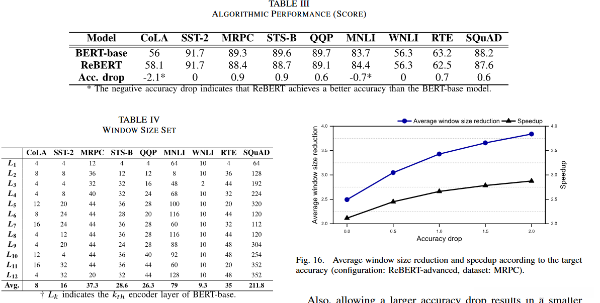 提出结合了窗口注意力机制和支持注意力计算的硬件设计-REBERT。