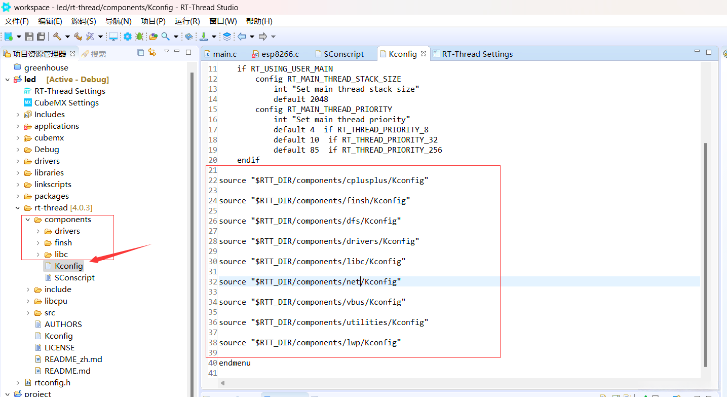 RT-THREAD-STUDIO报错kconfiglib.KconfigError: rt-thread/components/Kconfig:32: ‘rt-thread/components/ne