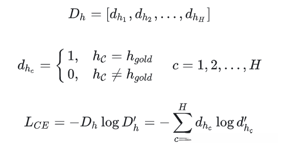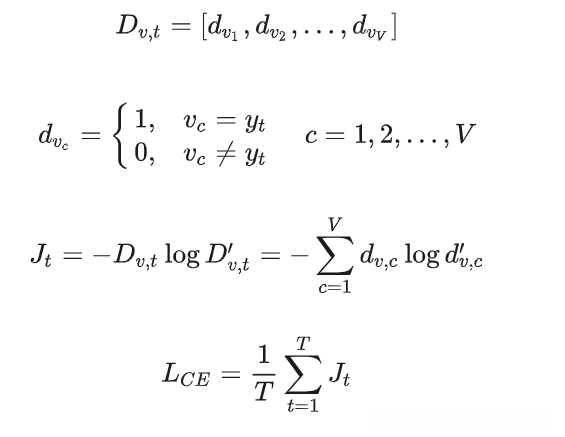 采用one-hot编码的形式,在真实的目标标记yt处赋予概率值为1,在其余位置则设置为0,并通过交叉熵损失函数来优化模型参数。