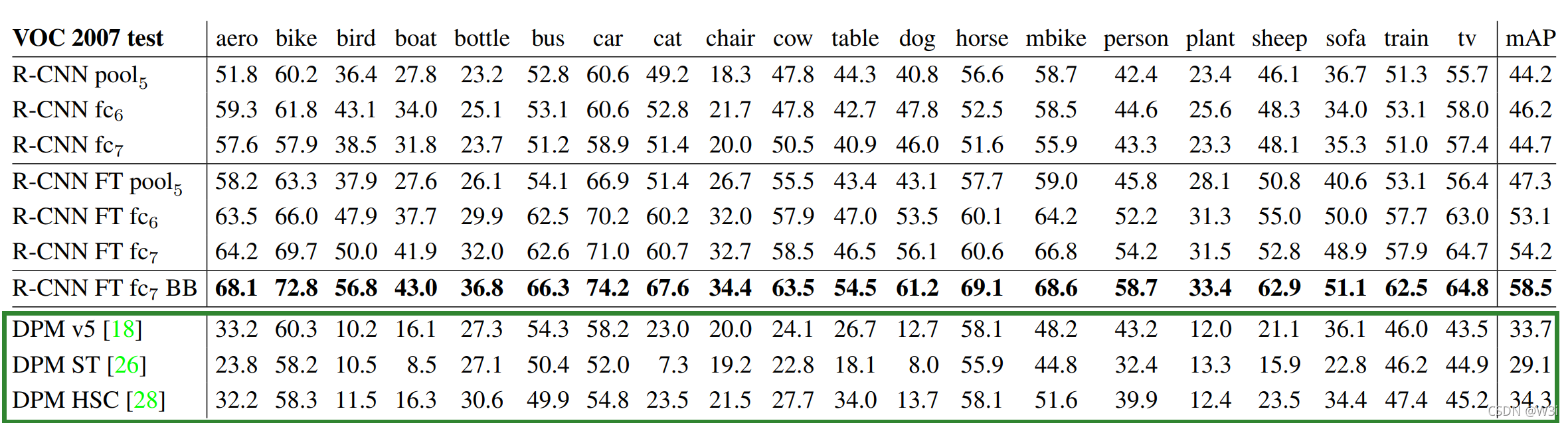 可以看到任一种R-CNN的性能都优于三种基于DPM的方法