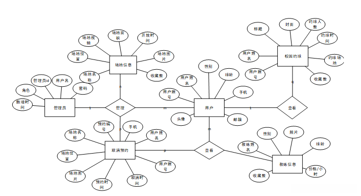 校园羽毛球预约平台总体E-R图如图4-6所示: