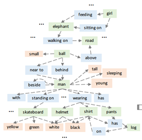 首先介绍文章中的'Variation-structured'这一概念,则具体而言,则指模型在每一步的动作空间都是动态调整的。其目的是通过动态调整动作空间来提高模型的选择效率。然而,在实现这一目标的过程中,则需要平衡动作空间的大小与选择效率之间的关系。为此,在研究过程中,则采用了基于训练集构建Directed Semantic Action Graph的方法。具体来说,则是基于训练集统计了物体类别与属性之间的关系网络。