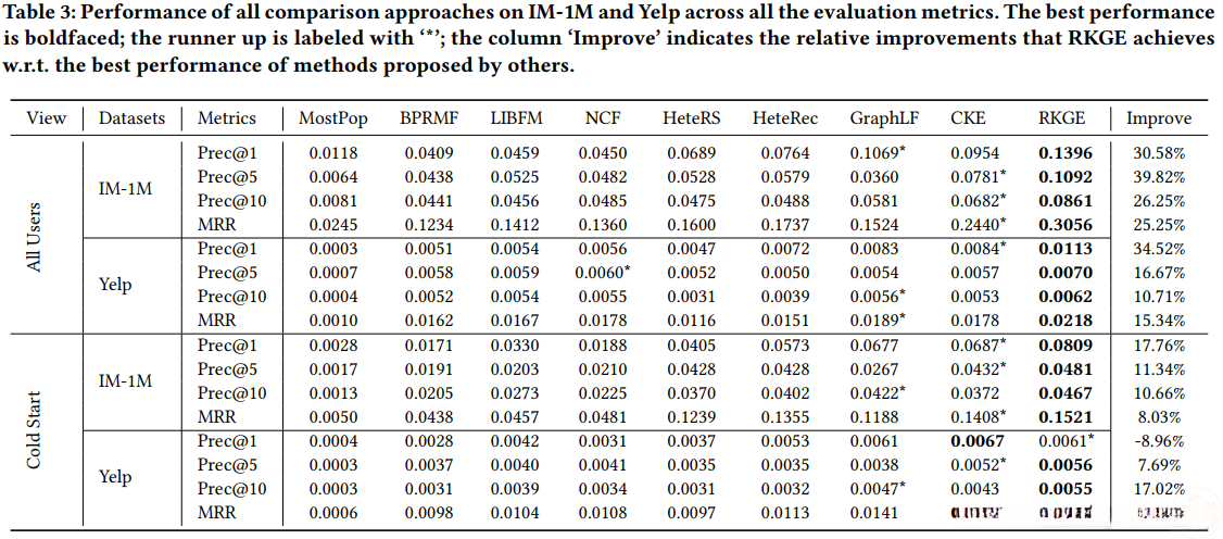 最后将推荐层与网络无缝集成,以通过端到端方式对RKGE进行训练。