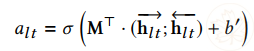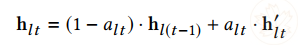 令alt代表时间步t时的注意力机制[attention gate] ,它是一个介于0和1之间的标量值。在时间步t时,隐藏状态[hidden-state] 被建模为某种形式。