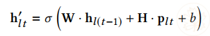 在时间步t−1时,在线编码一个隐藏状态hl(t−1), 该状态捕获了从e_0到e_{t−1}的信息序列;随后将其嵌入表示为\text{plt}, 并将其与当前的状态信息相结合. 从而生成下一个时间步的状态向量hlt.