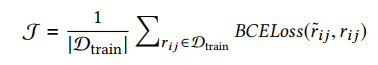 训练数据 Dtrain,例子:(ui,vj,rij,P(ui,vj)),损失函数为: