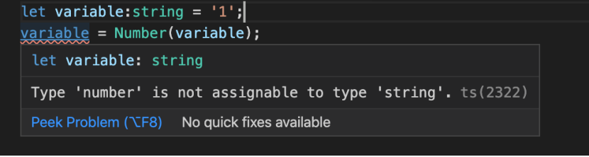 通常会声明一个变量并为其指定数据类型。一旦变量的数据类型发生变化(其中唯一例外是any),代码编译器会在编译过程中发出错误提示。