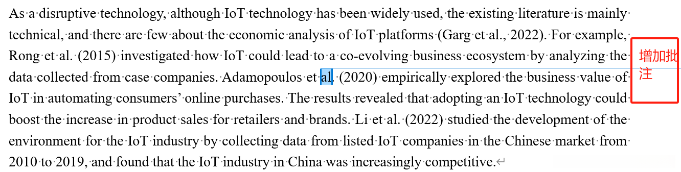 在撰写论文的过程中,如果你引用了哪些文献,可以在引用的具体位置添加引用内容并进行批注,这样可以方便后续文献的整理和管理: