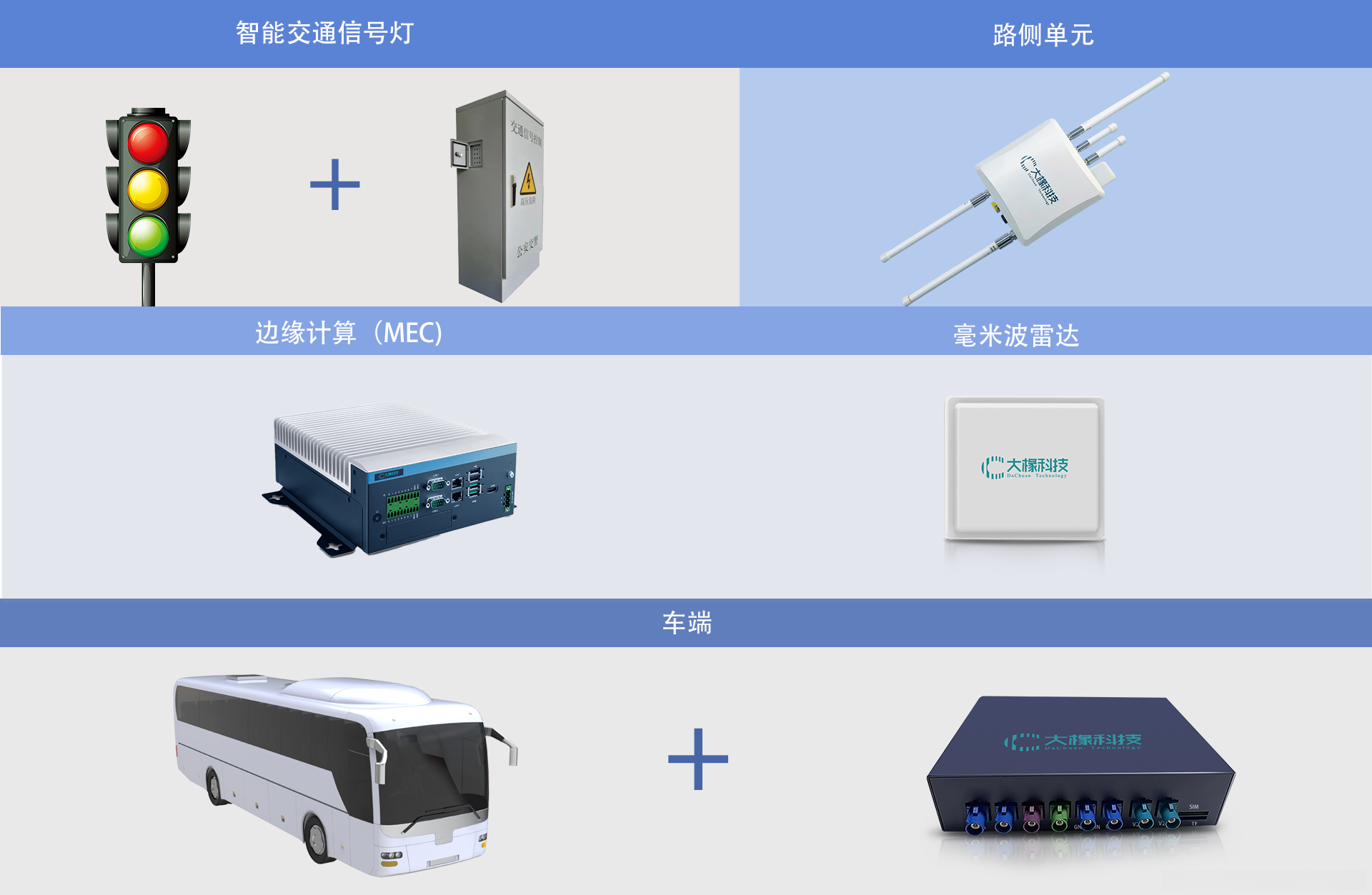 如上图所示,整个系统主要由路侧单元RSU设备、信号机、交通信号灯、MEC、毫米波雷达以及车载单元OBU设备组成,同时还有云控系统,可以对我们基础设备进行状态查询、设备的设置以及升级等工作,并且该系统可支持后装完成,路侧单元RSU,毫米波雷达可后装于信号灯支架上,MEC设备可后装支架旁。车载单元可以后装于测试的快速公交车辆上,同时保证设备能够正常连接网络,方便云控系统对设备的访问即可。