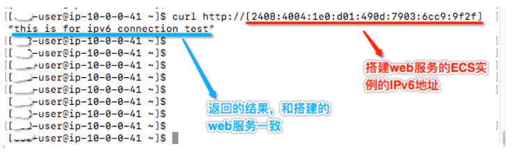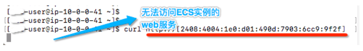 7.2、通过登录IPv6终端访问第(六)步配置了Web服务的ECS实例,并验证仅启用主动出规则时的情况是否有效