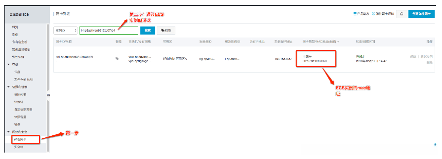 注:ECS的mac地址也可通过控制台进行查看。如下图所示