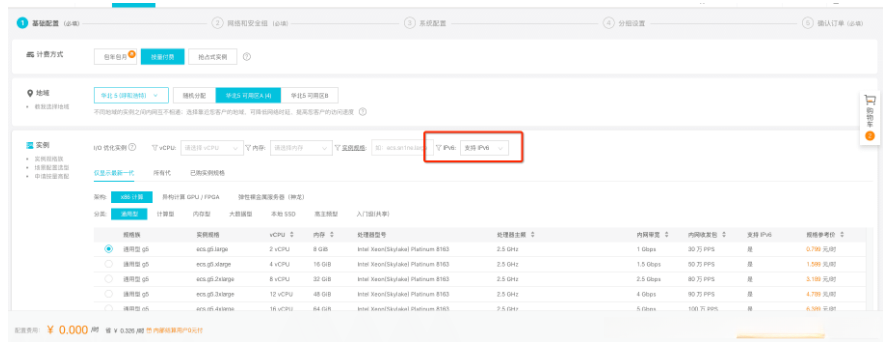 2.2、在ECS购买页面过滤支持IPv6的规格