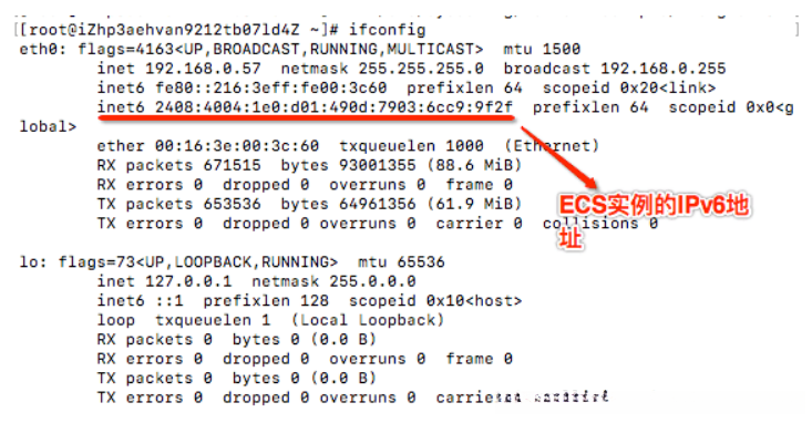 4.7、通过ifconfig命令,查看ECS实例的IPv6地址