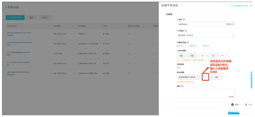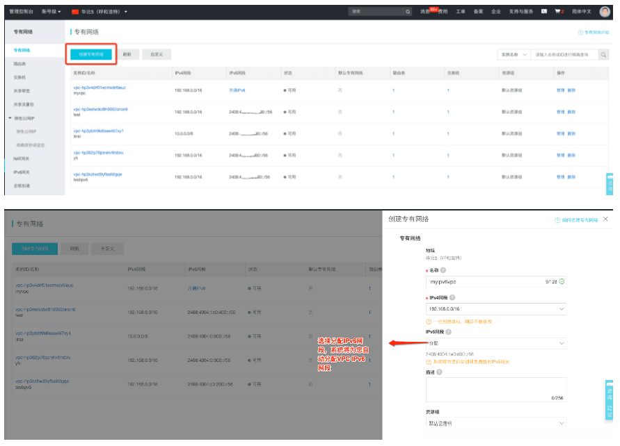 说明:目前VPC双栈、ECS双栈仅限于阿里云中国站华北5(呼和浩特)地区覆盖。其他更多地域即将上线支持VPC IPv6、ECS IPv6功能,请广大用户持续关注。