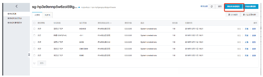 点击右上角的添加安全组规则 ,为ECS实例IPv6地址段设置安全组规则。