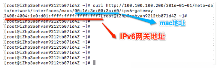 curl http://100.100.100.200/2016-01-01/meta-data/network/interfaces/macs/00:16:3e:00:3c:60/ipv6-gateway