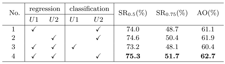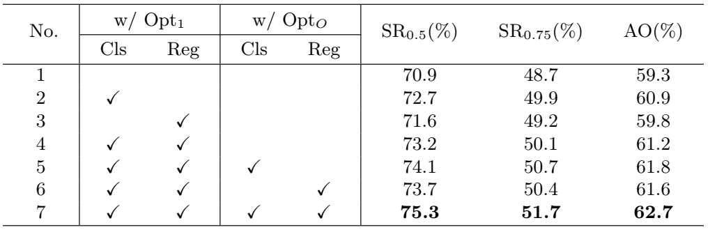 Opt1代表使用第一帧的增强训练集进行优化的过程, Opt0则指的是在线优化阶段. 对中心点邻近区域中的像素点进行回归, 以达到预设的目标尺寸.