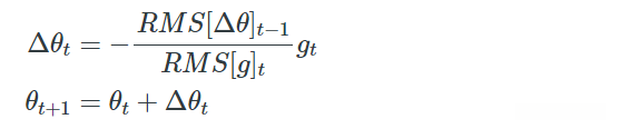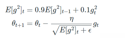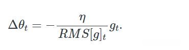 从上面的等式中可以看出,RMSprop十分类似于Adadelta.换句话说,Adadelta中的梯度之和被定义为过去平方梯度的衰减加权平均值。