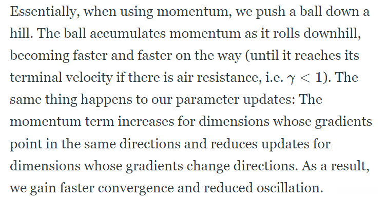 Momentum 可以在相关方向加速SGD并且抑制震荡。