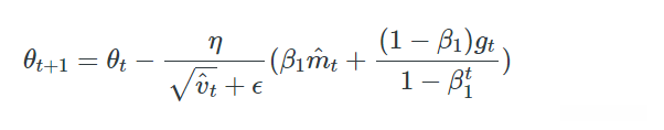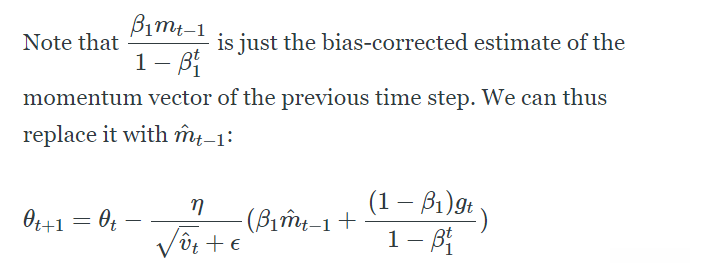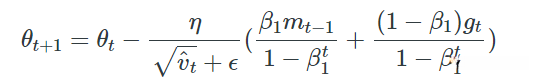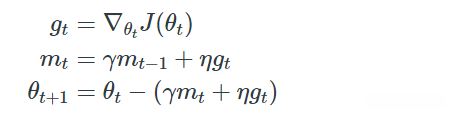 Dozat 建议采用以下方式改进NAG方法:而非分别对梯度和参数施加动量——即分别应用于当前时刻的梯度计算和下一时刻的参数更新——我们采用超前动量直接对当前参数进行更新